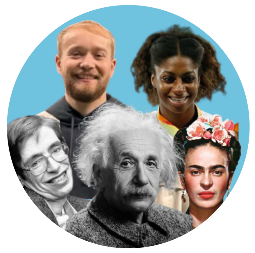 Billy Monger: @billymongerracing via Instagram; Kadeena Cox: Fernando Frazão/Agência Brasil, CC BY 2.0, via Wikimedia Commons; Frida Kahlo: Alamy; Albert Einstein: Photograph by Orren Jack Turner, Princeton, N.J. Modified with Photoshop by PM_Poon and later by Dantadd., Public domain, via Wikimedia Commons; Stephen Hawking: NASA, Public domain, via Wikimedia Commons